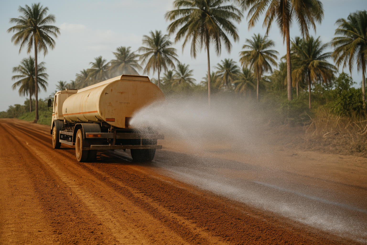 Estabilizador iónico para caminos no pavimentados. Mejora el transito reduciendo el polvo y mejorando la sanidad de los cultivos.