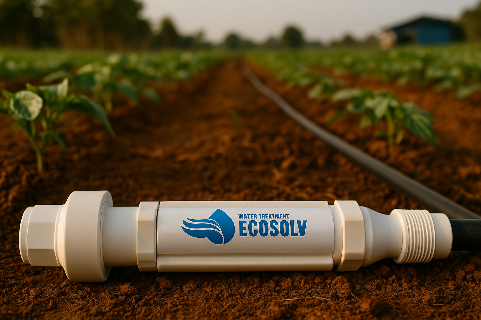 Tecnología de estructuración de agua que optimiza el riego y la absorción en cultivos. Instalable en línea, sin energía, ni partes móviles y libre de mantención.